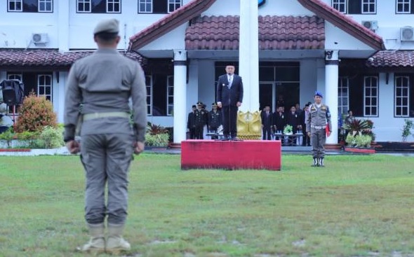 Acara yang berlangsung di halaman kantor Bupati ini dihadiri oleh berbagai elemen penting, termasuk Forkopimda, unsur TNI, Polri, para ASN di lingkungan Pemerintah Kabupaten Bangka serta Non ASN/Honorer Pemkab Bangka.